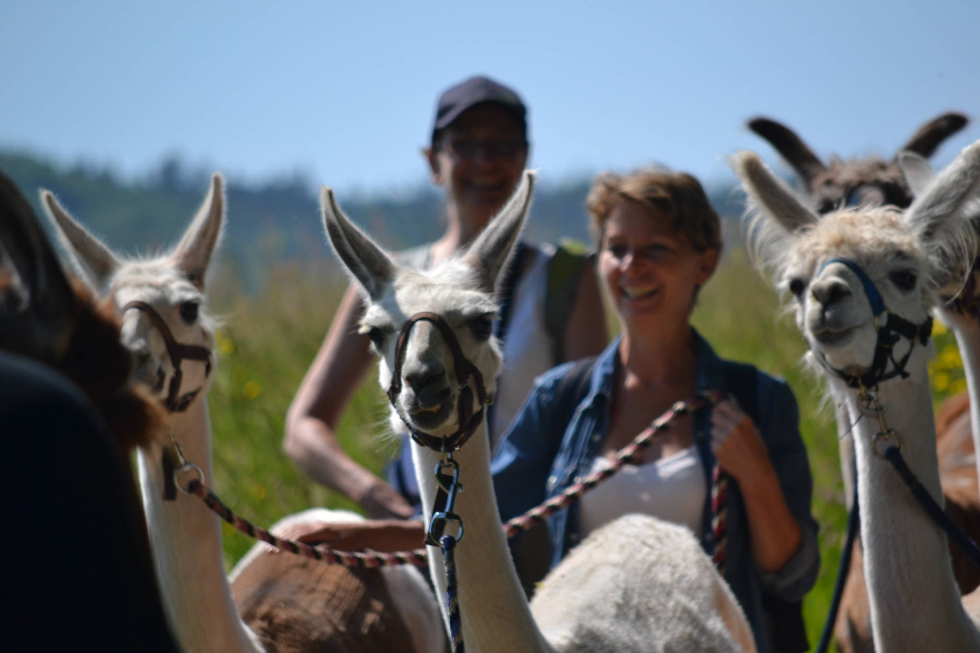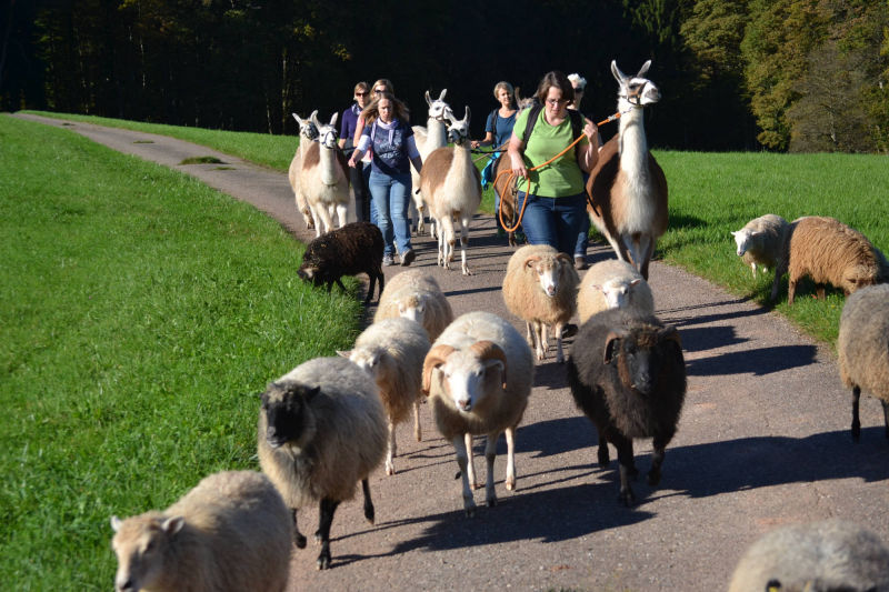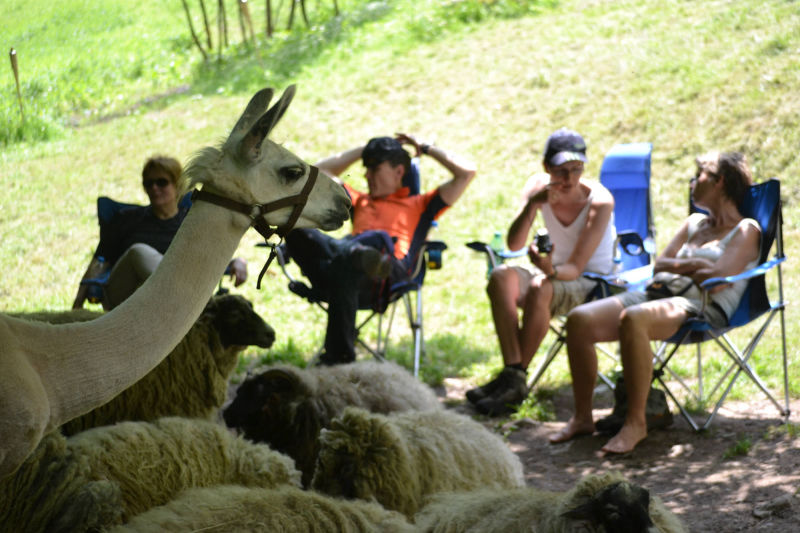 Immer dabei natürlich, unsere Lamas, Schafe und auf Wunsch, wenn möglich, unsere Esel.